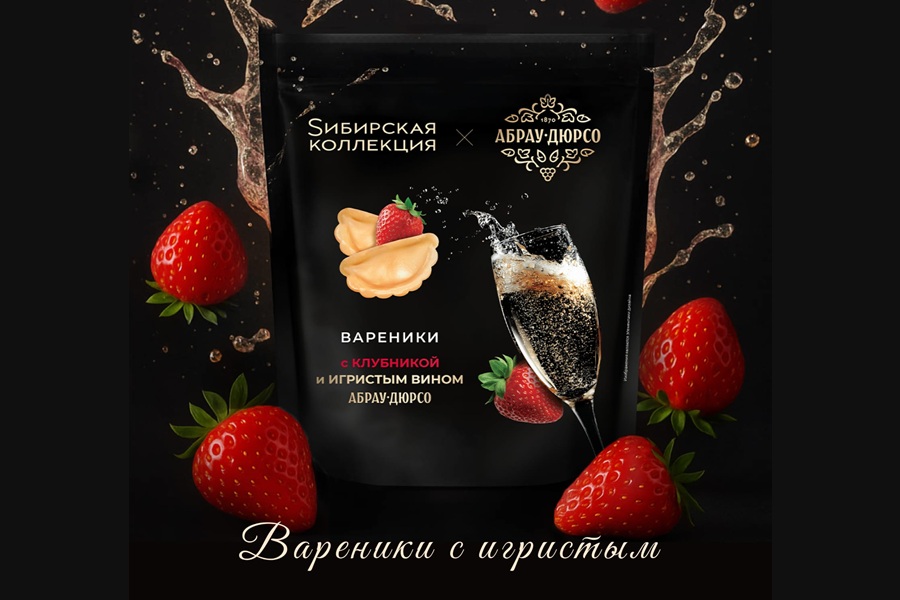 Лидер отечественного рынка игристых вин «Абрау-Дюрсо» и ведущий премиальный бренд замороженных полуфабрикатов «Sибирская коллекция» объединились для создания уникального продукта, в котором воплотились идеи эногастрономии и национальных кулинарных традиций. Результатом сотрудничества стала новинка с уникальной рецептурой — вареники с клубникой и игристым вином «Абрау-Дюрсо».