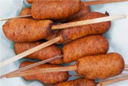 3. Можно использовать деревянные шпажки, подавая сосиски непосредственно на них. Для этого следует наколоть сосиску на шпажку и окунуть в тесто.