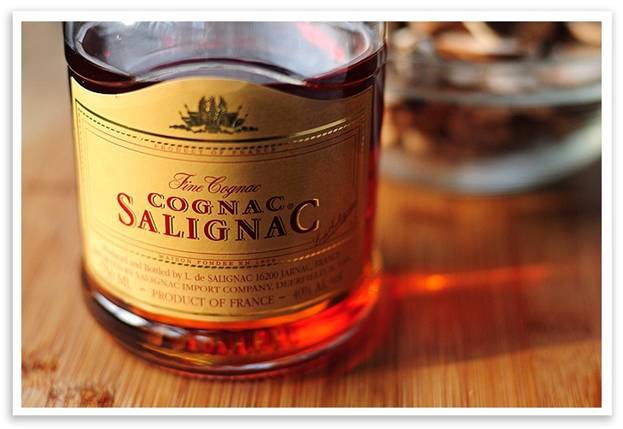 3. Добавьте к смеси коньяк и перемешайте. Напиток придаст более яркий вкус тушеным овощам. Затем добавьте курицу, горошек, нарубленный тимьян, шалфей, петрушку. Посолите и поперчите.