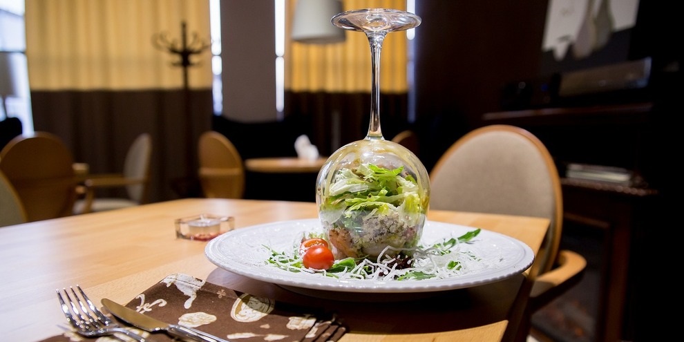 Любителям лёгких, вкусных и изысканных закусок стоит обратить внимание на популярный салат с тигровыми креветками, авокадо, пшеном киноа и горчично-соевой заправкой «Деюн» (400 руб.) и на сочные листья салата с печенью кролика, свекольным парфе и малиновой заправкой (400 руб.)