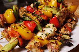 встряхнуть несколько раз и оставить еще на 5 мин на слабом огне. Яйца сварить вкрутую и очистить, после чего нарезать тонкими ломтиками. Кубики мяса, яйца, лук и ломтики свеклы насадить поочередно на вертел, полить маслом и дать ему стечь, посыпать порошком карри. Жарить над раскаленными углями до готовности.
